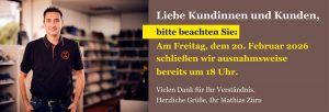 Montag – Freitag 08:30 bis 12:30 und 14:30 bis 18:30 Uhr